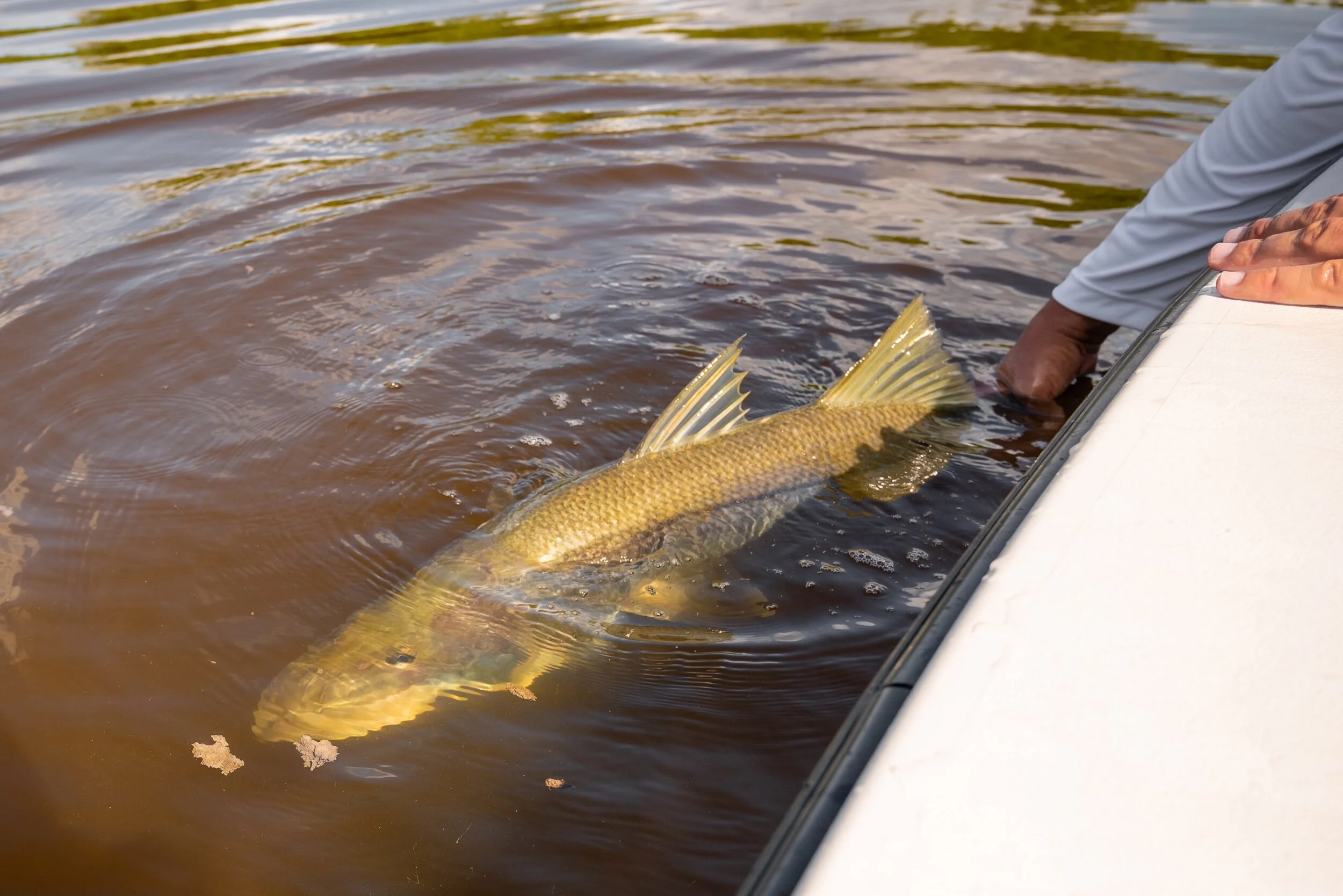 Redfish are Captain Chris’s personal favorite to catch in The Everglades and Pine Island Sound. The flats and mangroves of SWFL are covered with redfish. On certain tides, our redfish eat flies with their back out of the water. A well placed cast generally entices a fish to eat and the fight is on! Redfish fight like NFL fullbacks - no searing runs, but they will wear you out on a 7 seven weight. When the tides are right, you will generally get MANY shots at redfish.